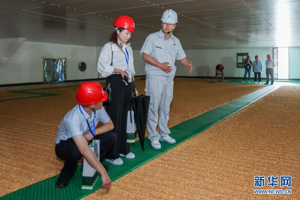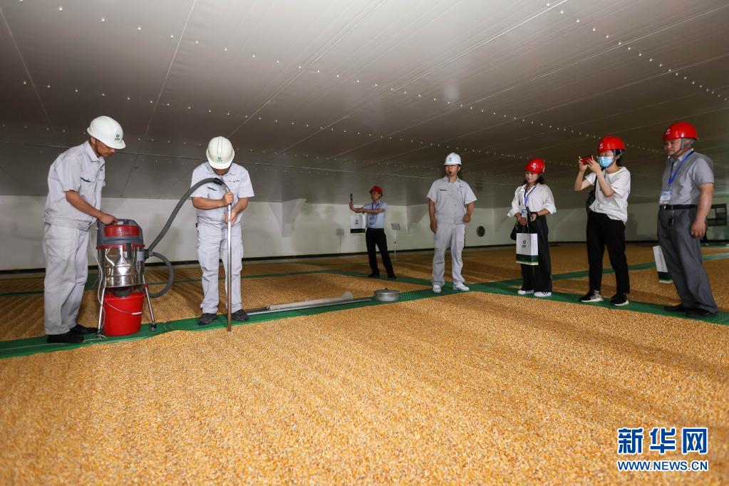 6月24日,工作人员在一处存放玉米的粮仓内为公众介绍如何保障粮食安全。