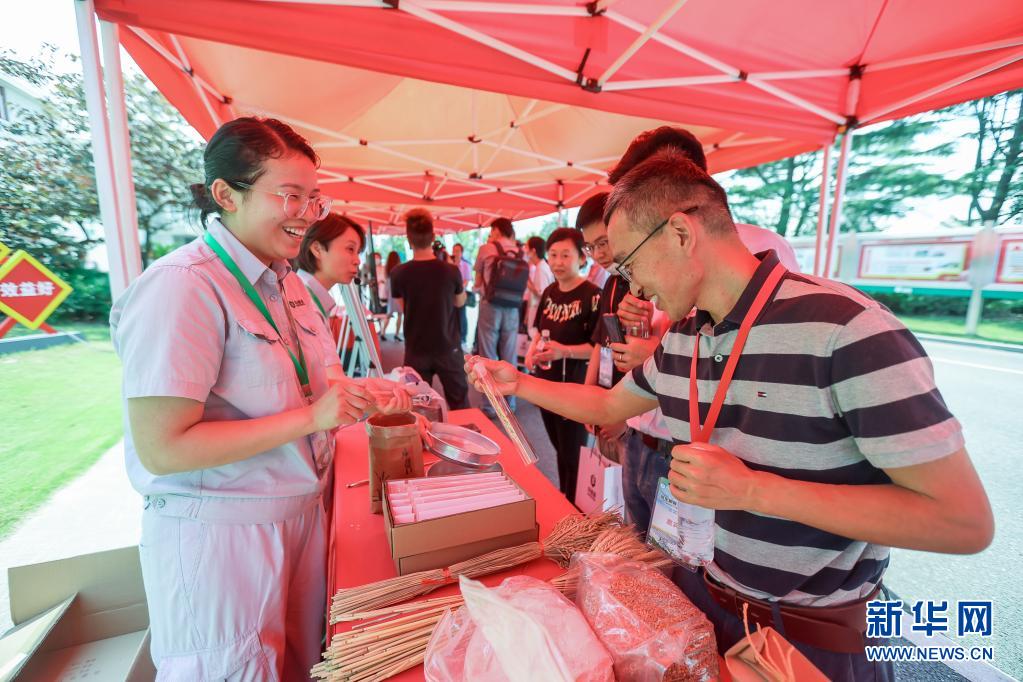 6月24日,讲解员为公众代表讲解稻穗和麦穗的区别。