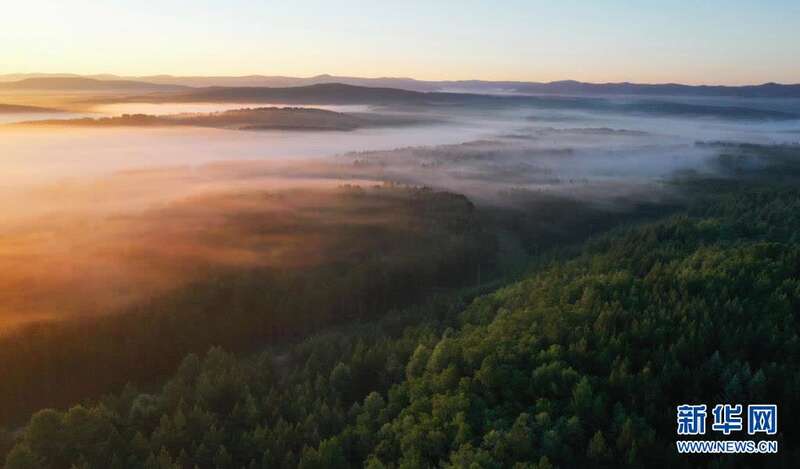 6月27日拍摄的塞罕坝国家森林公园晨景(无人机照片)。新华社记者 杨世尧 摄