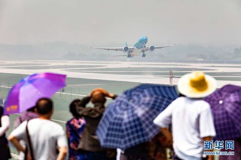 6月27日,四川航空公司飞往北京首都国际机场的3U8001航班在成都天府国际机场起飞,这是该机场投入使用后的首个航班。新华社记者 沈伯韩 摄