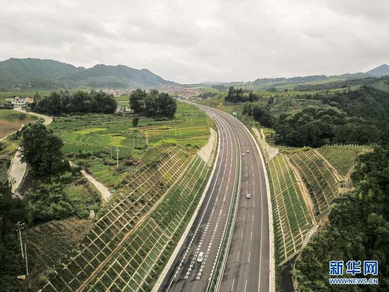 6月28日,车辆行驶在都安高速公路上(无人机照片)。新华社记者 杨文斌 摄