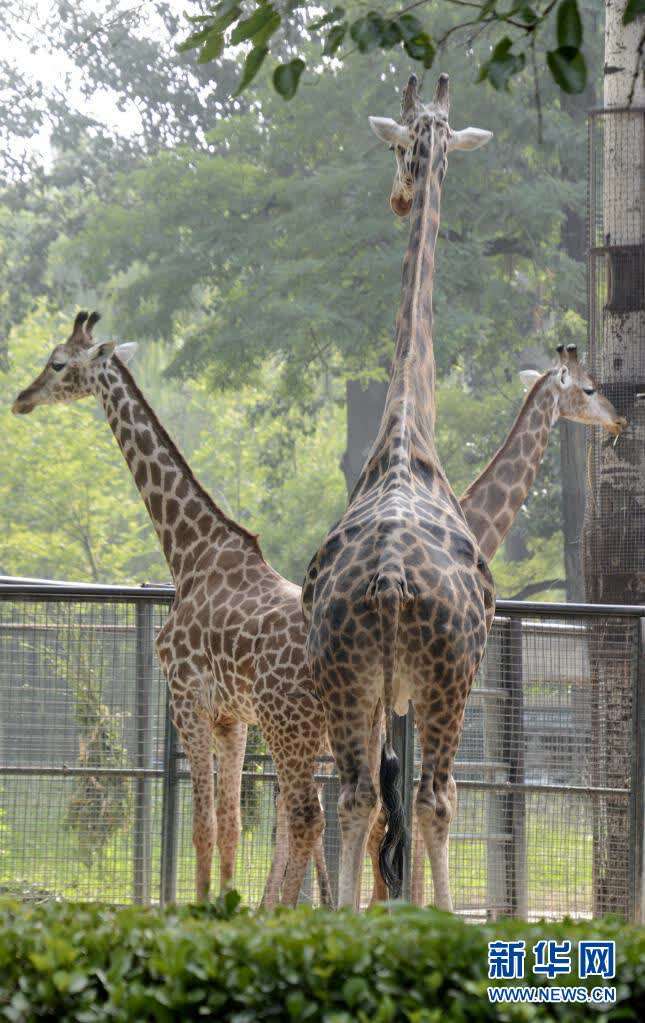 北京动物园的长颈鹿在树下乘凉(6月28日摄)。新华社记者 李欣 摄