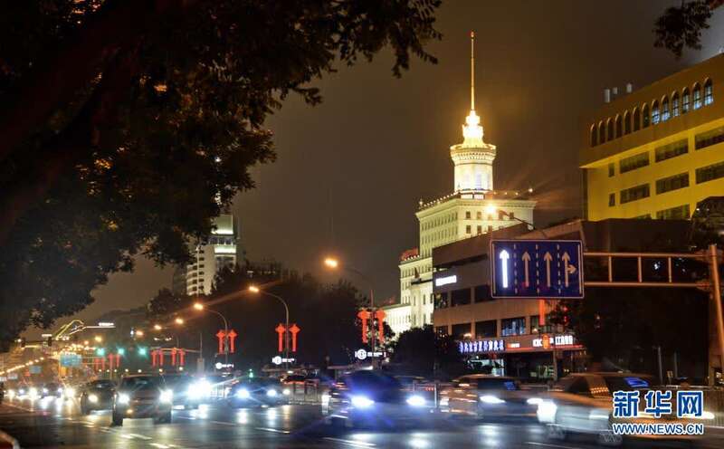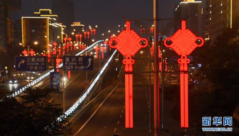 彩灯装扮的北京市复兴路(6月28日摄)。新华社记者 李欣 摄