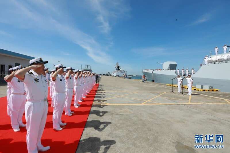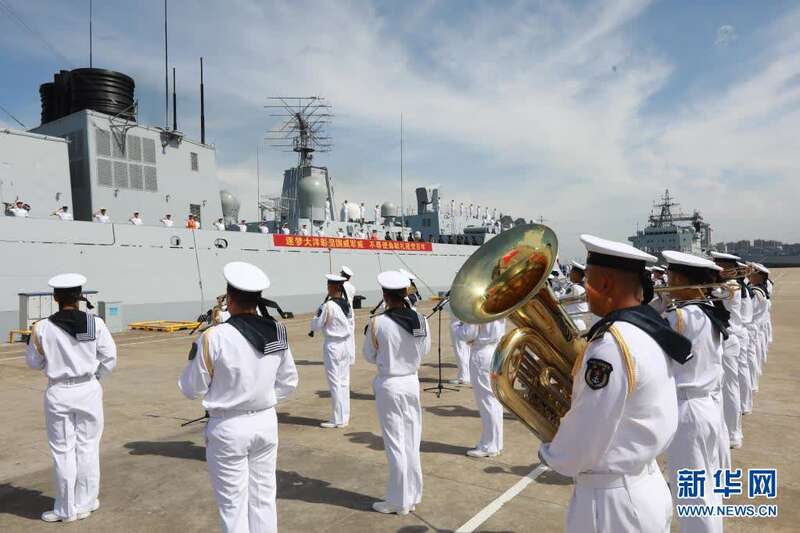 6月29日,中国海军第37批护航编队圆满完成亚丁湾、索马里海域护航任务,返回湛江某军港。这是欢迎仪式现场。新华社发(江晓卫 摄)