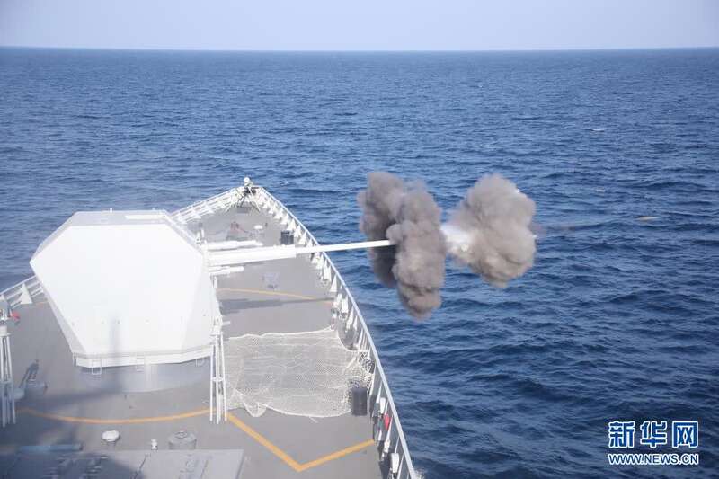 中国海军第37批护航编队组织开展多课目实弹射击训练,主炮对海射击(3月13日摄)。新华社发(王健 摄)