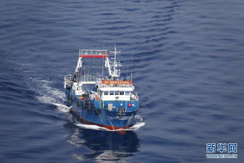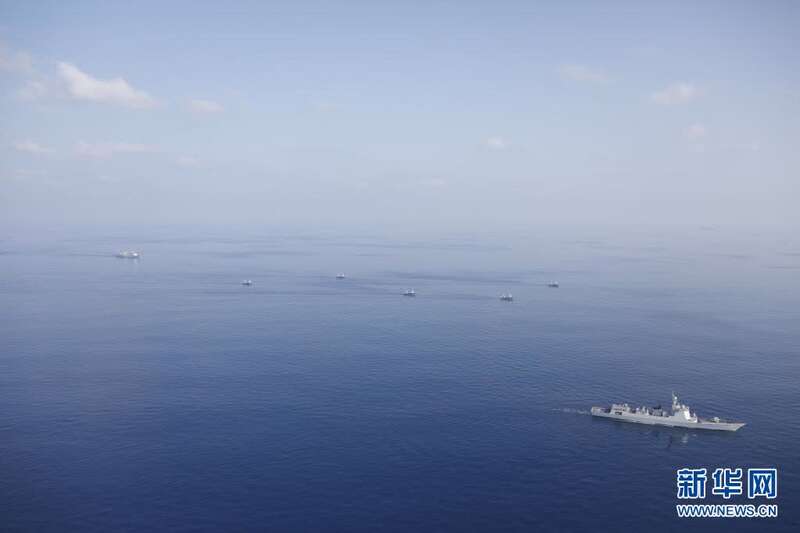 中国海军第37批护航编队在亚丁湾海域为中国“沪渔1715”船队伴随护航(4月23日摄)。新华社发(王健 摄)