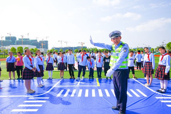 2021年6月30日,江苏南通如皋市公安局交警大队联合高新技术产业开发区实验小学,开展“暑期交通安全课堂”主题活动。学生们在民警的带领下识别交通标识牌、练习交通手势、体验安全过“马路”等,上了一堂生动的暑期交通安全课。