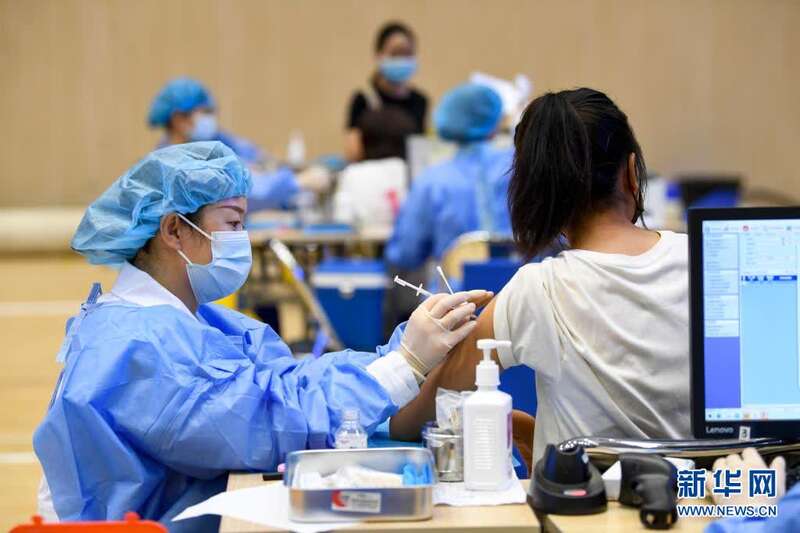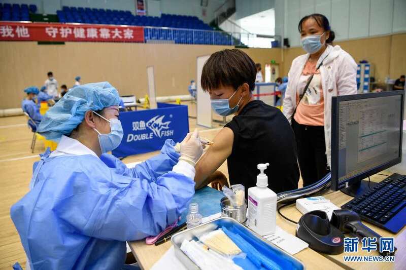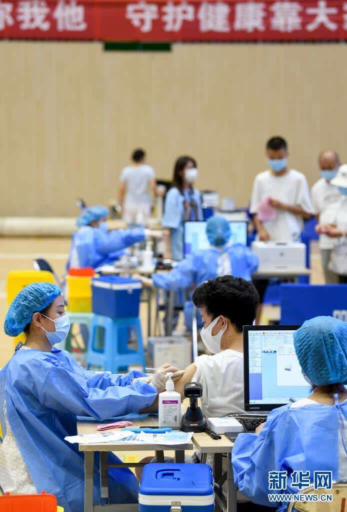 8月15日,学生在宁夏银川市金凤区新冠疫苗方舱接种点接种新冠病毒疫苗。