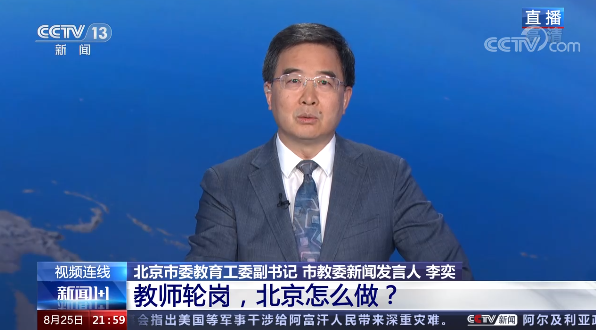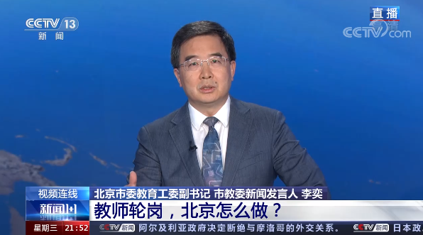 北京市委教育工委副书记、市教委新闻发言人李奕:实际上在轮岗过程中,我们充分考虑到老师的感受和他业务成长以及学校的服务质量,还有学生实际获得之间的关系。那么我们这次为什么提出在区域内轮岗流动?特别是在过去已经比较成熟的集团化办学和学区内部进行干部教师的轮岗,就是在老师的生活空间以及岗位流动上,统筹兼顾他们的发展需求。当然很关键的一点是,我们对老师的绩效考核和荣誉认定也是一个重要的引导和杠杆。