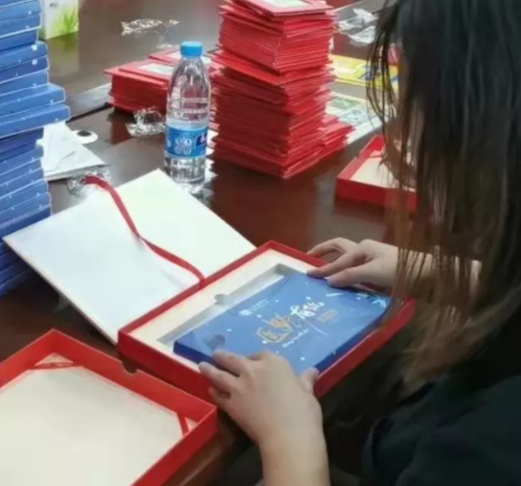 除了招生咨询工作,王若欣还负责分装录取通知书。新乡医学院的通知书以礼盒的形式发放,其中还含有校园漫画地图等新生礼物。想到去年自己收到沉甸甸的礼盒时的欣喜,王若欣说: “ 我很荣幸能为学弟学妹们包装通知书,这应该也是分享金榜题名之喜的一种方式吧。 ”