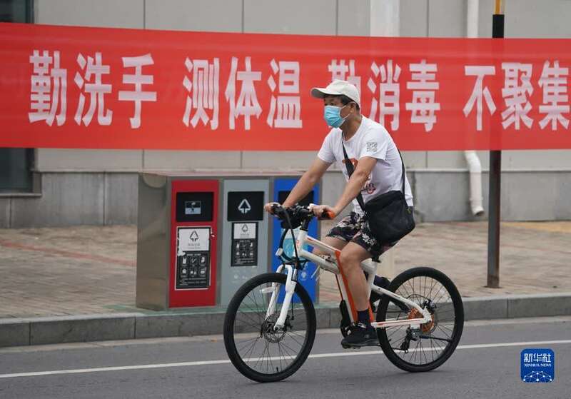 8月26日,居民骑行在江宁区禄口街道街头。新华社记者 季春鹏 摄
