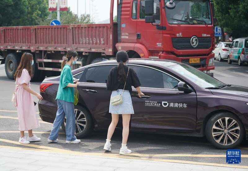 8月26日,在江宁区禄口街道街头,居民打车出行。新华社记者 季春鹏 摄