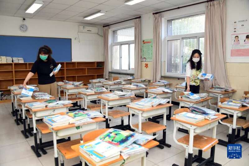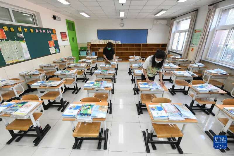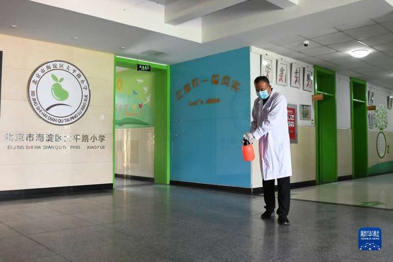 新学期临近,北京市海淀区太平路小学做好学生教材分发、教室布置等开学准备。与此同时,学校对教学楼楼道、教室以及食堂厨房等重点区域定期消毒,保障环境卫生。