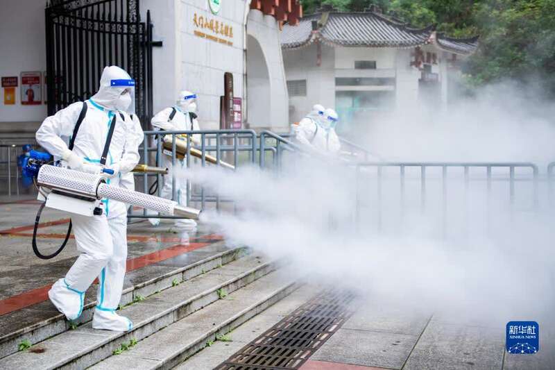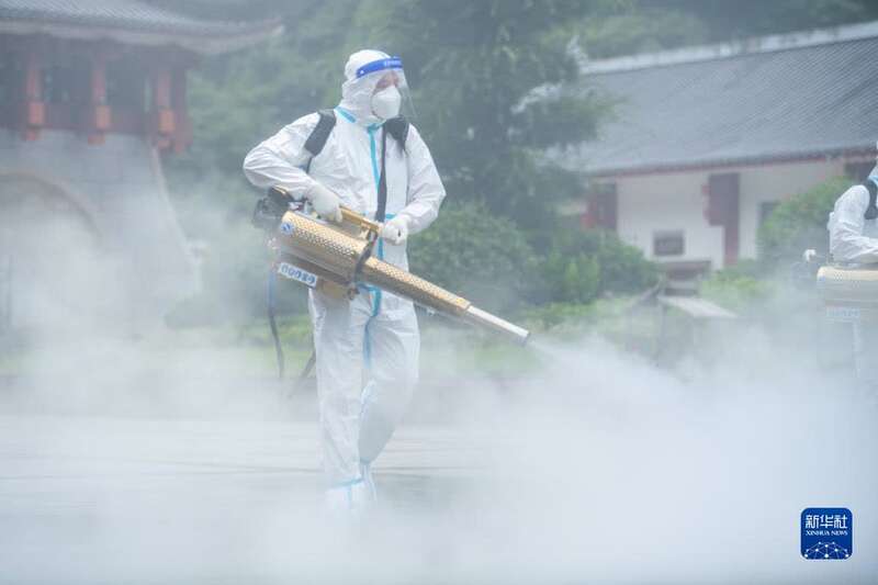 8月26日,在张家界天门山景区,工作人员在进行消杀作业。新华社记者 陈思汗 摄