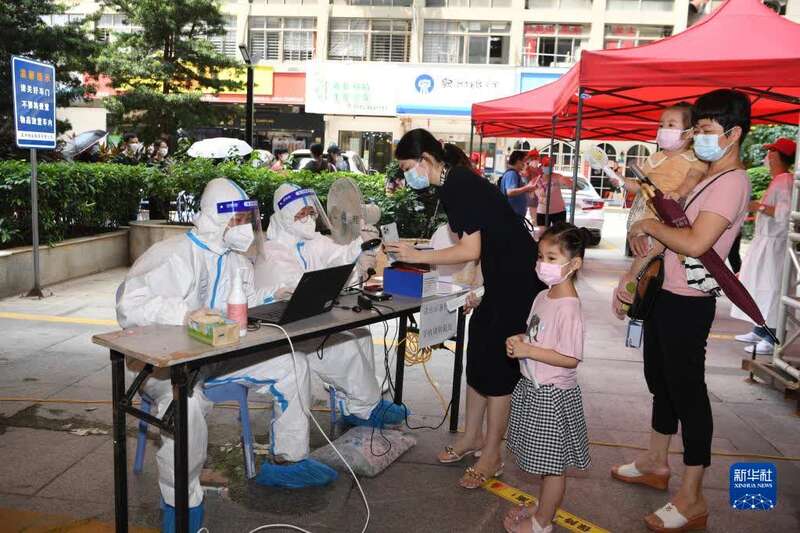9月18日,厦门市民在社区核酸检测点登记检测。