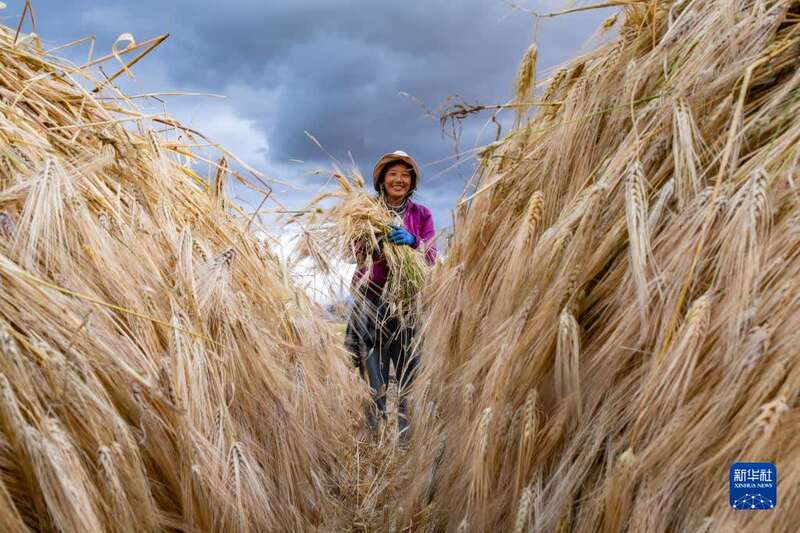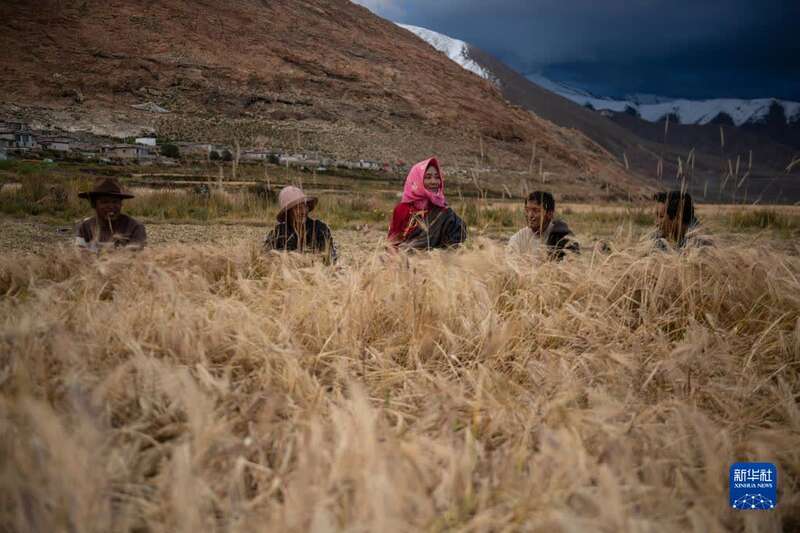 9月23日,西藏那曲市尼玛县文部乡文部南村村民开镰收割。新华社记者 普布扎西 摄