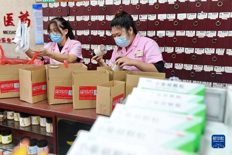 9月23日,药店工作人员在打包群众通过“康急送”云守护平台购买的药品。新华社记者 林善传 摄
