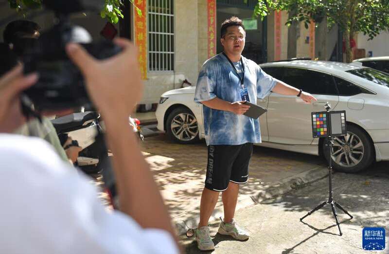 9月19日,航天摄影发烧友陈玉成在海南文昌一处航天摄影发烧友相对集中的公寓外指导其他发烧友对各自的相机进行色彩校正,以求拍出的视频色彩统一。新华社记者 蒲晓旭 摄