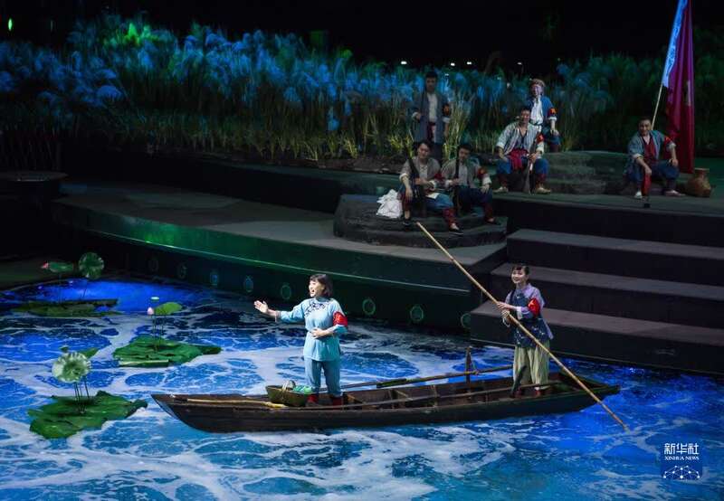 9月25日,演员在演出歌剧《洪湖赤卫队》。新华社记者 肖艺九 摄