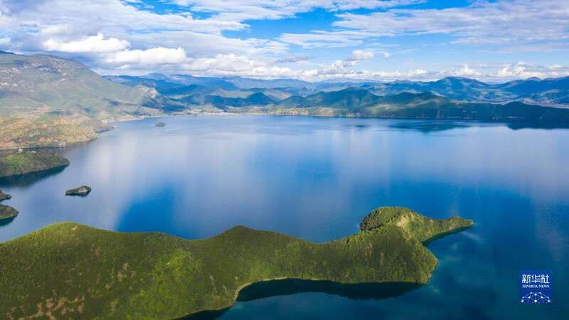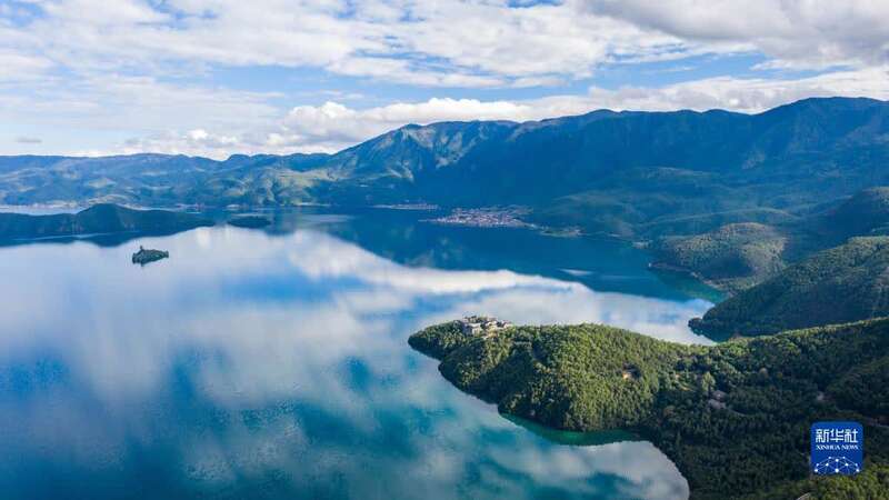 9月24日拍摄的泸沽湖一景(无人机照片)。新华社记者胡超 摄