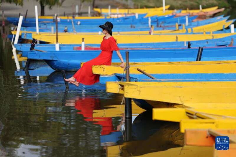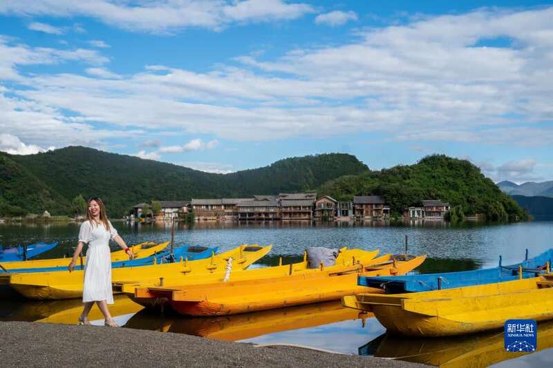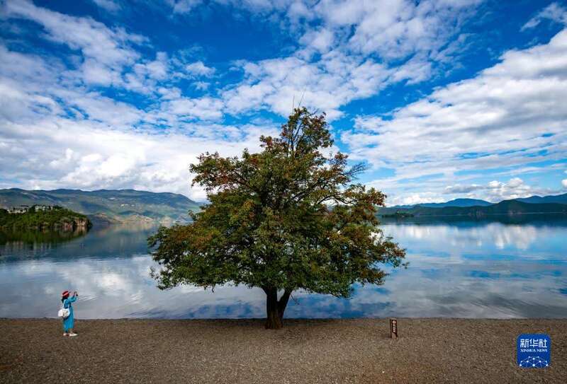 9月24日,游客在泸沽湖边游玩。新华社记者胡超 摄