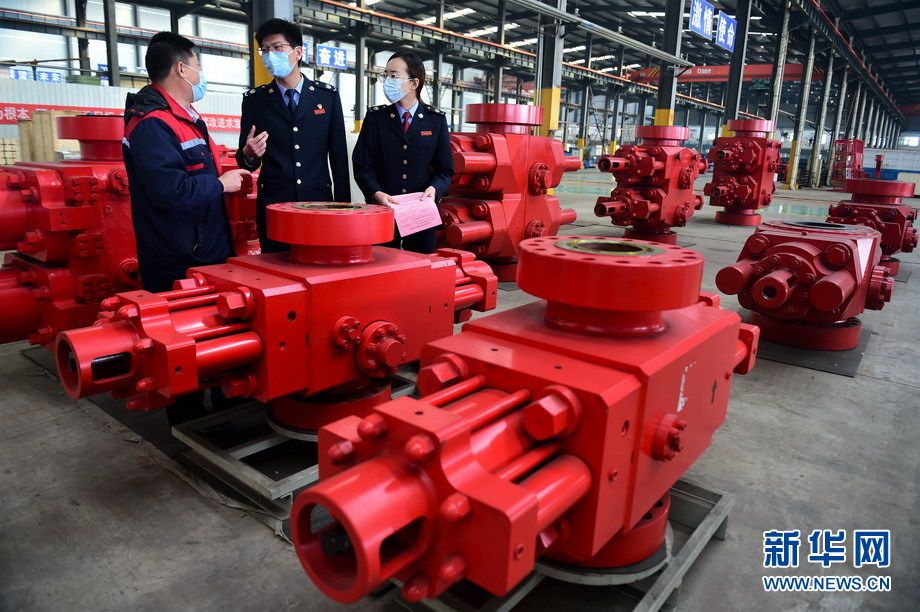 石油钻采装备制造业是河北任丘市传统产业,目前全市共有石油钻采设备及石化装备制造企业100多家,主要生产油井防喷器、控油机、钻杆接头、泥浆泵、油管等五大系列230多个品种,为了更好助力石油钻采装备制造业研发新品提升海外市场竞争力,任丘市税务局为相关企业研发费用加计扣除比例由75%提高到100%,这有力地促进了企业科技创新,提升了市场竞争力,产品畅销国内并远销北美、非洲、中东等地。(傅新春 摄)