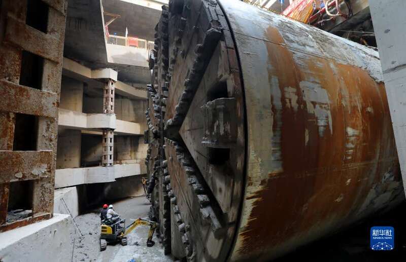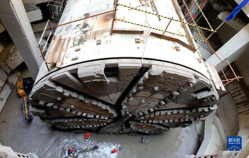 据介绍,“骐跃号”总长约99米,其中主机长度约16米,刀盘切削直径达14.05米,于2020年10月完成调试下线。施工期间,“骐跃号”先后下穿高压铁塔、虹梅南路高架桥、地铁15号线,确保了错综复杂的水务、燃气、电力、通信各类管道安全,最终于华泾站接收井顺利完成水中接收。