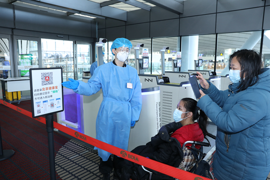 北京首都国际机场(以下简称“首都机场”)针对今年春运特点,重点做好老年旅客等特殊群体的出行服务,在航站楼入口设置“无健康码”分流通道标识,安排工作人员帮助登记。在问询柜台和爱心休息区,配有急救药品、血压仪、血糖仪等用品的“爱心百宝箱”守护着旅客健康。此外,通过设立安检“无障碍通道”,首都机场努力让老人、幼儿、孕妇及其他身体不适的旅客更快捷地通过安检。