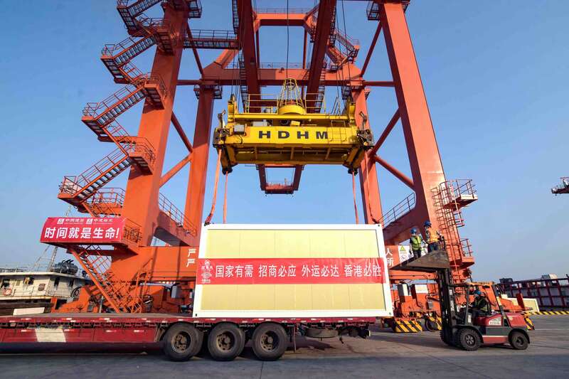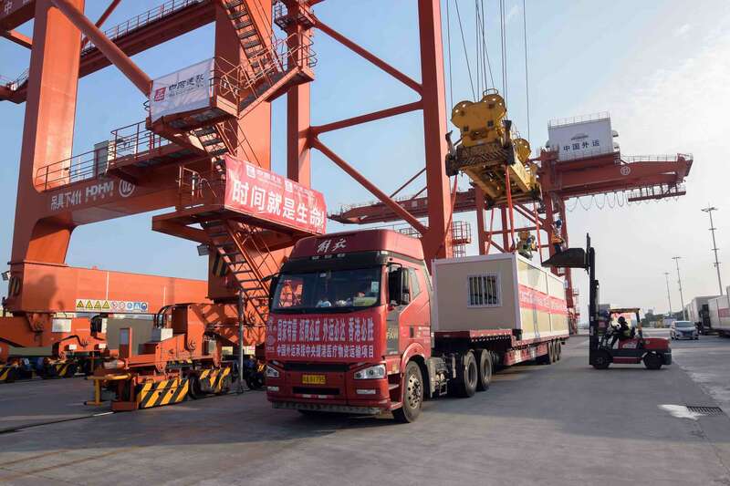 为加快香港方舱医院建设的速度,应中建国际的要求,中国外运在江门高新港特地腾出场所,供中建国际的员工在港口组装方舱板房,以减少香港组装方舱板房的压力。