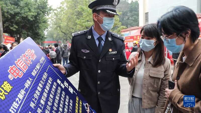 3月4日,民警在“雷锋街市”给市民讲解反电信诈骗知识。