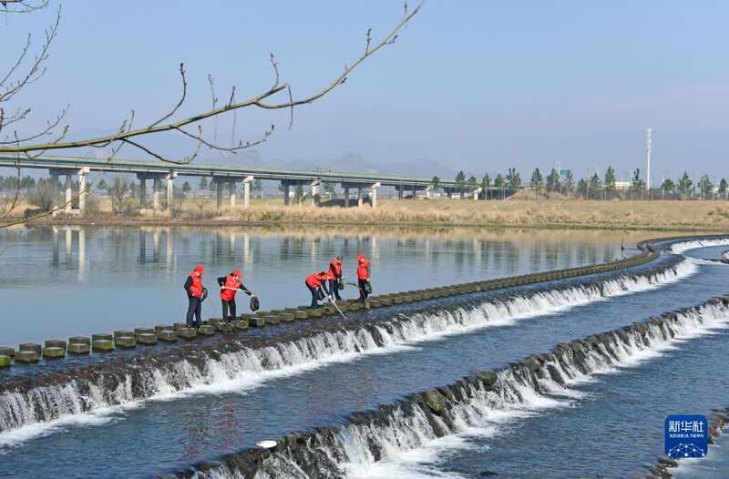 3月5日,浙江省交通集团高速公路仙居收费中心所党员、巾帼志愿者在仙居县永安溪横溪段河流清理河面。
