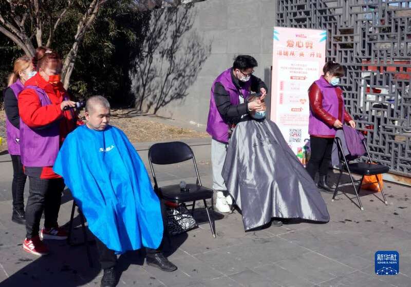 3月5日,志愿者在北京市安定门街道辖区为居民提供“爱心剪”理发服务。
