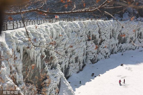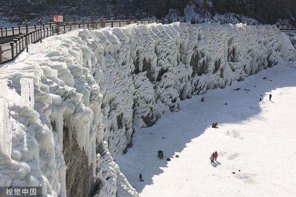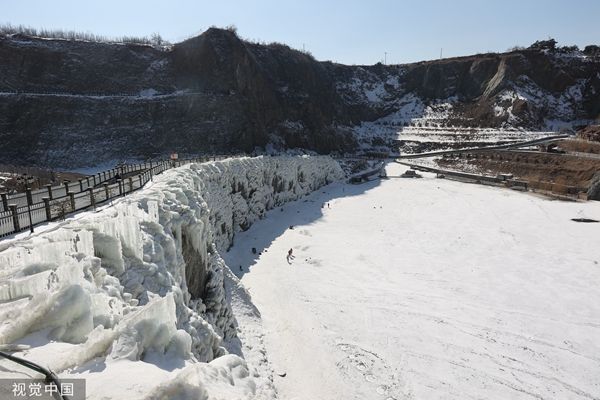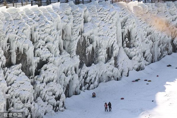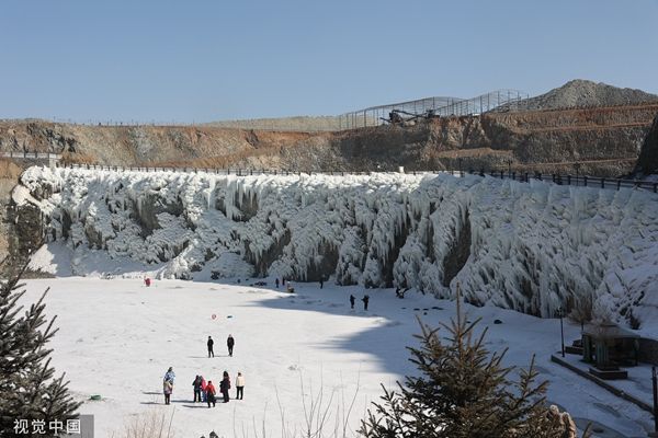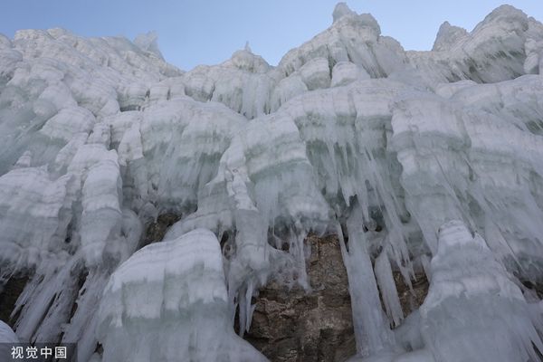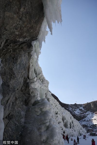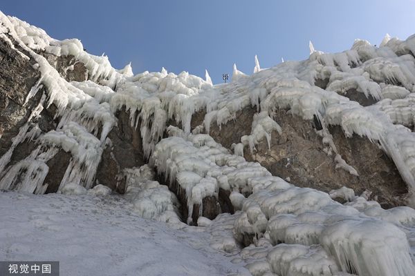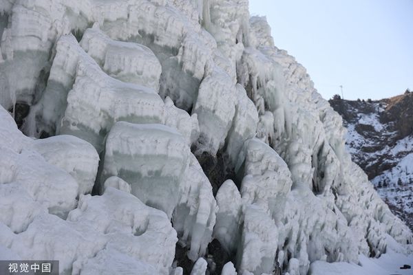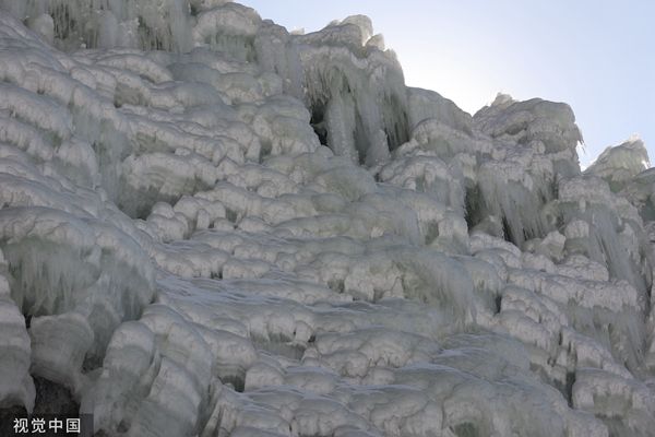 2022年3月7日,吉林省长春市二道区,一处冰瀑布景观成为网红打卡地。