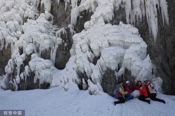 随着吉林省气温的升高,昼夜的温差较大,多处冰雪集中地白天融化的雪水,在夜晚再次结冰,位于长春市二道区的雪驰山形成了难得一见的“冰瀑布”奇观。雪驰山景区内冰瀑长约300多米,10米多高,巨大的冰瀑地处背光坡,东西的跨度走向不会因为阳光的强烈而让瀑布融化。很多爱美的女士身着鲜艳服装在现场网络直播,拍照打卡。春日阳光的照耀下,冰凌晶莹剔透、层层叠叠颇为壮观。冰帘、冰幔、冰挂的奇特景观成为北国之春独有的风情。