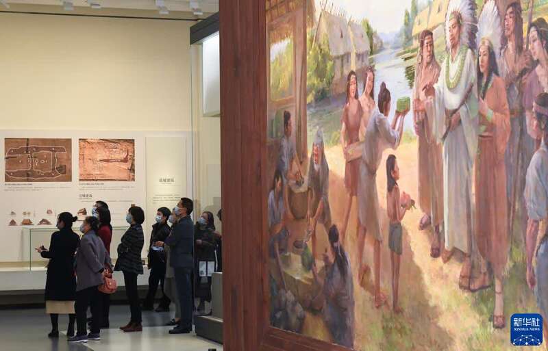 3月2日,游客在良渚博物院观看刻符陶罐。
