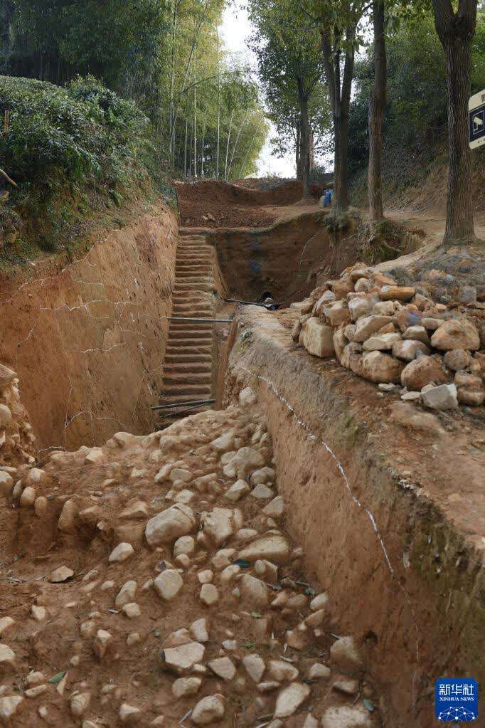 这是正在发掘的一处良渚文化水利遗址现场(3月2日摄)。