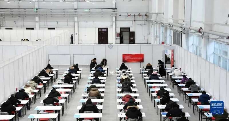 2021年12月25日拍摄的北京理工大学考点工程训练中心考场。当日,2022年全国硕士研究生招生考试拉开帷幕。新华社记者 任超 摄