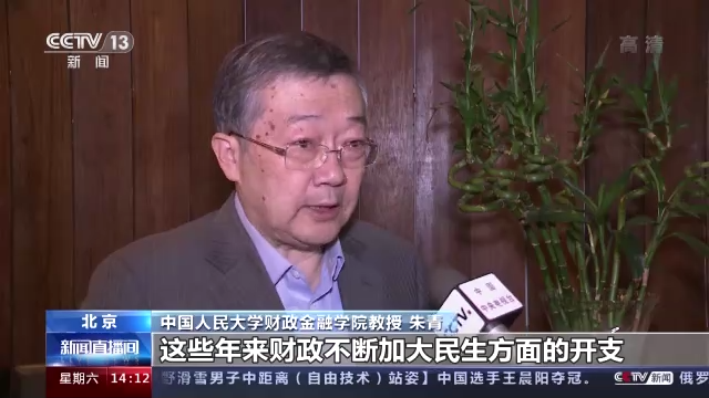 中国人民大学财政金融学院教授 朱青:这些年来财政不断加大民生方面的开支,那么特别是随着我们现在的这个人口老化,所以民生方面的开支,需求是越来越大了。特别是党的十八大以来,我们不断调整财政支出结构,不断增加对民生方面的倾斜,所以这也体现了财政的一种本职,体现了国家以人民为本,体现了财政的人民性。(总台央视记者 王楠 王瑄 杜雷鸣)