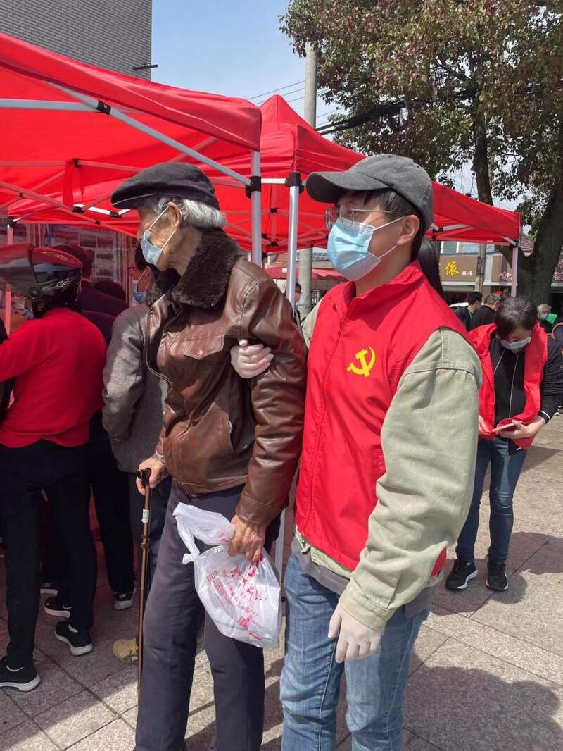 海悦居民区防疫志愿者杨国权与蒋亚萍是一对党员夫妻。在核酸检测现场,除了帮助老人预约健康云、维护秩序等,当看到腿脚不方便的老人时,蒋亚萍就主动前去搀扶并拿来椅子让老人休息一下。杨国权则承担起了为小区居家隔离人员送生活物资等“跑腿”服务。周末,夫妻俩还带着儿子共同加入志愿者。