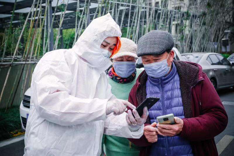 同样,大学生志愿者陆宛婷在蓝堡公馆小区做志愿者时,利用会日语的特长,帮助一位日本友人成功注册了健康云。那一刻,大家会心一笑。