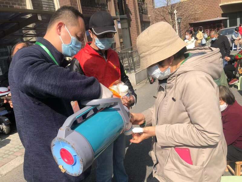 手持为居民配的紧急药物、连续几个晚上只睡了2-3个小时的社区干部吴海英听说预约打针的医生到了,一路奔跑送药,只为给医务人员和患者多争取一点时间;