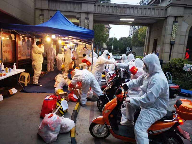 蓝色收获居委会社区干部张敏慧每日奔忙于小区抗疫。她从小区的东区搬到了西区,只能与女儿隔楼相望,甚至忙到连父亲的手术都忘记。金悦居委会社区干部吴艳和同事们在小区闭环管理前两天就住进了居委会,儿子刚上一年级,每天要给妈妈打电话,“我每次跟他说得最多的,就是你要好好学习,因为每次他说妈妈我想你时我就会哭,我都要扯开话题。”
