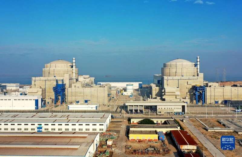 福清核电5号机组(左)和6号机组(2021年12月29日摄,无人机照片)。