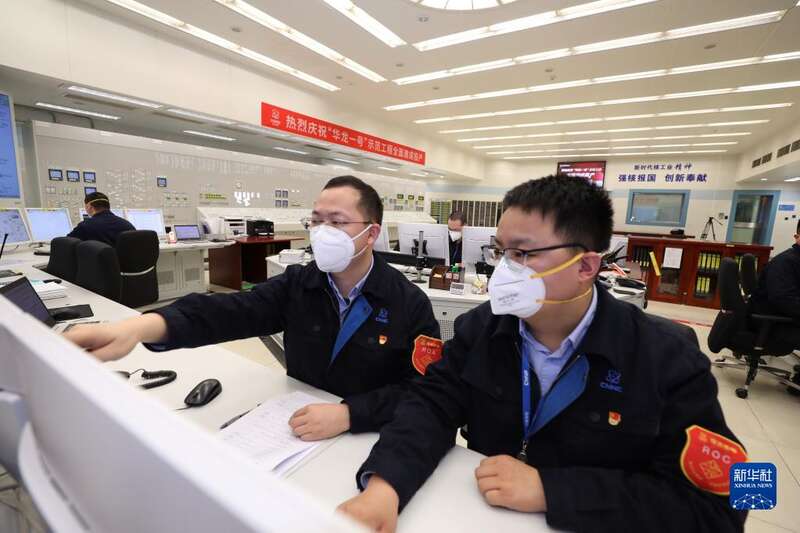 3月25日,工作人员在“华龙一号”示范工程福清核电6号机组主控室工作。