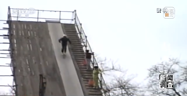 沈阳体育学院运动人体科学学院教授 王新:从今年开始,我们研制的就是防雪功能着陆的旱雪的场地。这个场地是一个复合结构的,能够跟雪的刚度较为一致的训练场地,它也是世界上第一个自由式滑雪空中技巧的旱雪场。运动员冲击下来,这个垂直方向的变形给运动员的反弹力要跟雪上接近一致。然后往下滑的这个摩擦情况也要跟雪尽量一致,这也是一个很难解决的科学问题。