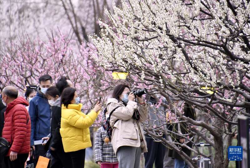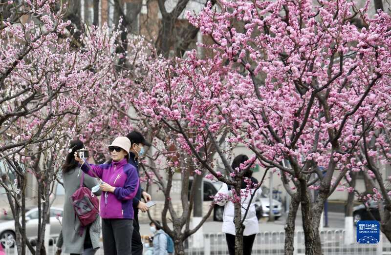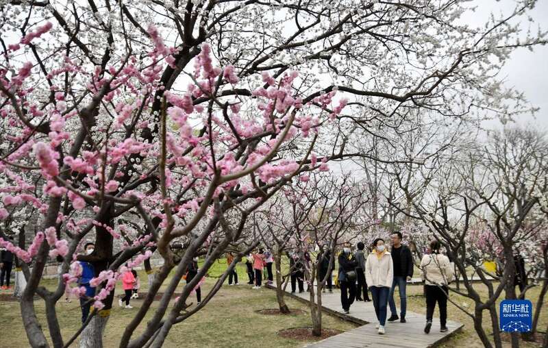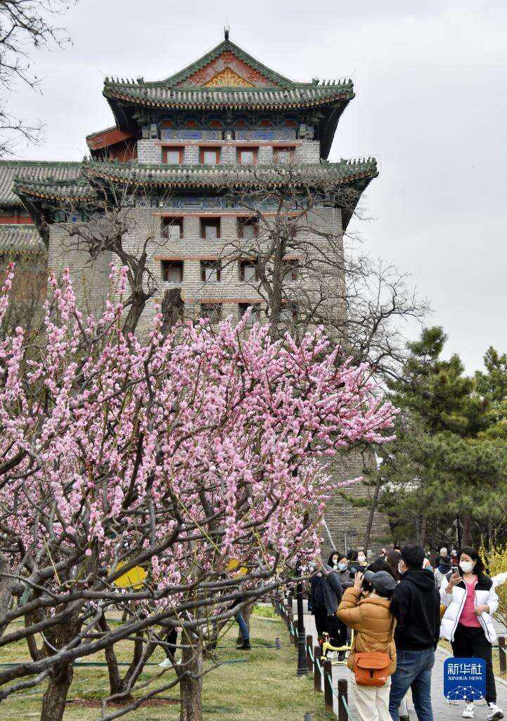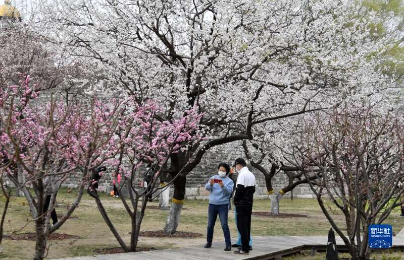 近期,北京市明城墙遗址公园内桃花盛开,吸引大批市民前来赏花踏青。