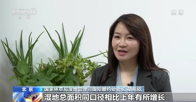 国家林草局湿地管理司国际履约处处长 胡昕欣:2021年监测结果显示,国际重要湿地生态状况总体保持稳定,湿地总面积同口径相比上年有所增长,大部分湿地补给水量保持稳定或者略有增长,总体水质呈向好趋势,生物多样性丰富度有所提高,湿地保护修复成效明显。