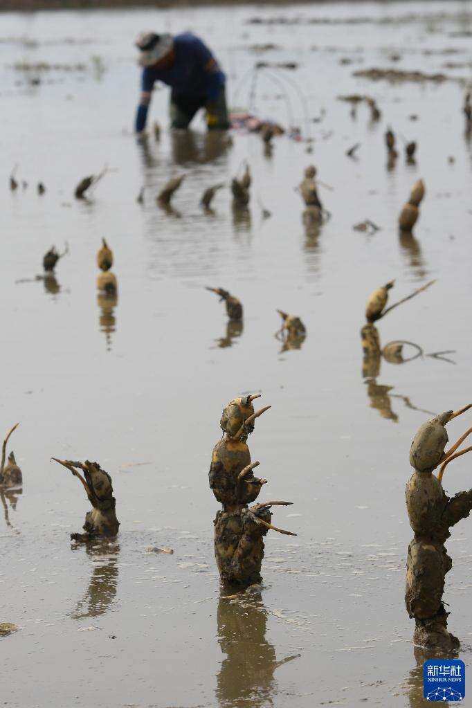3月26日,在云南省曲靖市沾益区金龙街道,村民在种植莲藕。