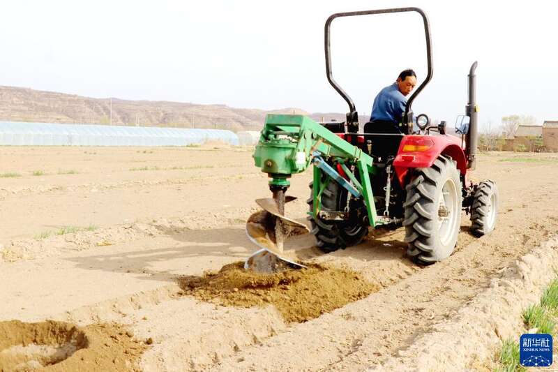 3月26日,甘肃省平凉市静宁县城川镇大寨村村民用拖拉机打育树坑,准备新植果树。