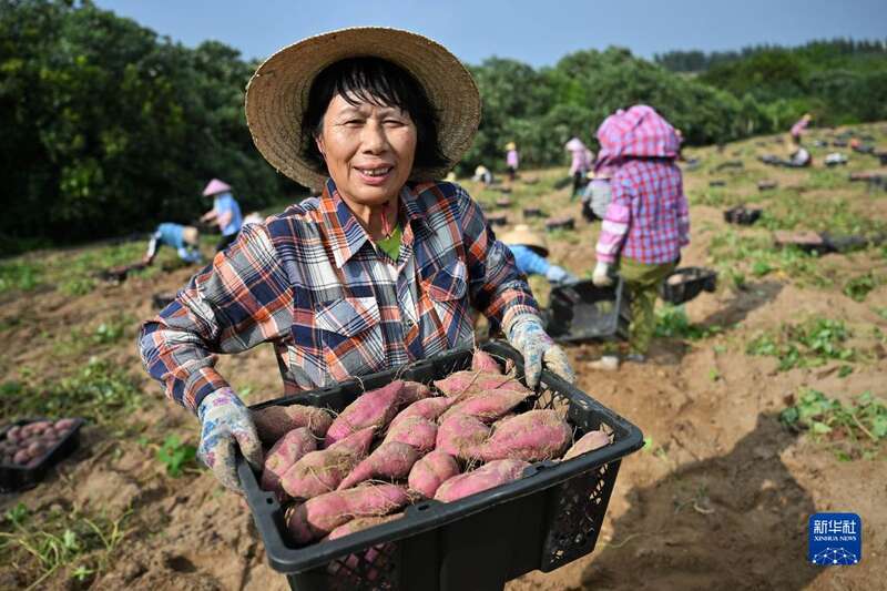 3月26日,工人在文昌市昌洒镇田间采收地瓜。